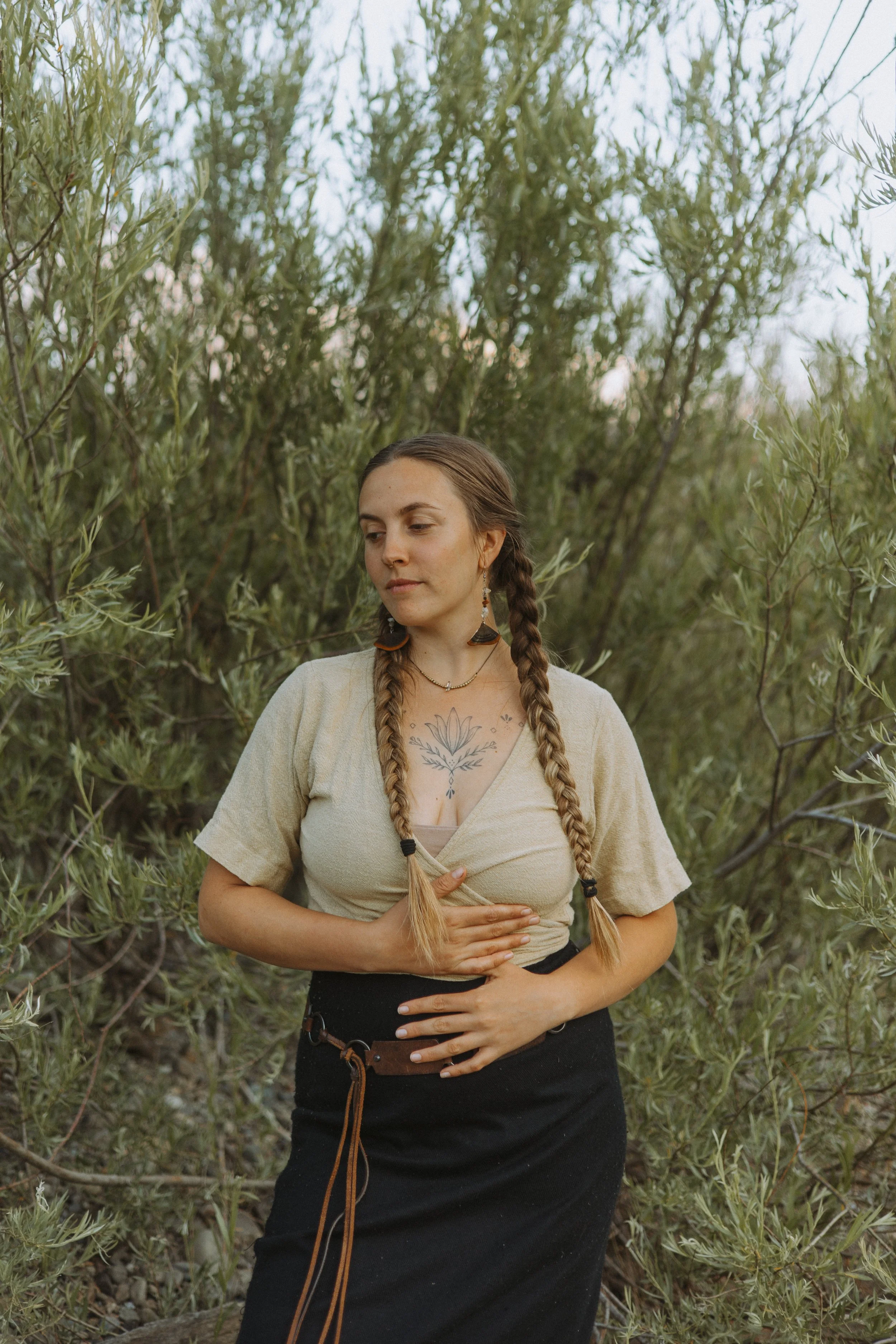 Immersed in the natural world all throughout my childhood in the hills and forests of Ashland Oregon, this love & connection gradually evolved into building intimate relationships to the plants around. From this connection my relation expanded into learning how to support my own vibrancy with the herbs’ guidance during times of immense health imbalance.